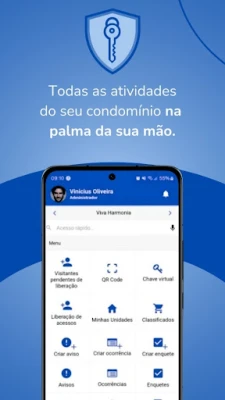 Desfrute da liberdade de gerenciar seus espaços e atividades com total praticidade. Reserve o salão de festas para seu evento, a quadra para a partida do fim de semana, ou qualquer área comum, tudo em poucos toques. A chegada de visitantes se torna um processo ágil e totalmente seguro, garantindo tranquilidade para você e controle para a portaria. E para aprimorar a convivência, o sistema de classificados permite que você troque, compre ou venda itens com a confiança e proximidade da sua vizinhança. Além disso, participe ativamente da gestão do seu lar através de enquetes intuitivas, opinando sobre melhorias e decisões importantes, fortalecendo o senso de comunidade.