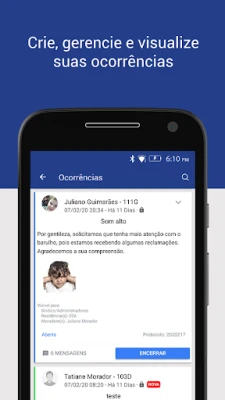 Mantenha-se sempre conectado e informado com alertas em tempo real sobre eventos importantes e comunicados do seu condomínio, entregues diretamente no seu celular. Registre e compartilhe ocorrências, sejam elas públicas ou privadas, utilizando fotos e vídeos para uma comunicação clara e eficiente. Sua opinião é valorizada: vote em decisões cruciais e contribua ativamente para o desenvolvimento do seu espaço, a qualquer momento e de qualquer lugar.